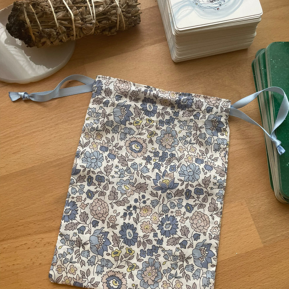 Pochon pour Tarot ou Oracle - Fleurs Bleues