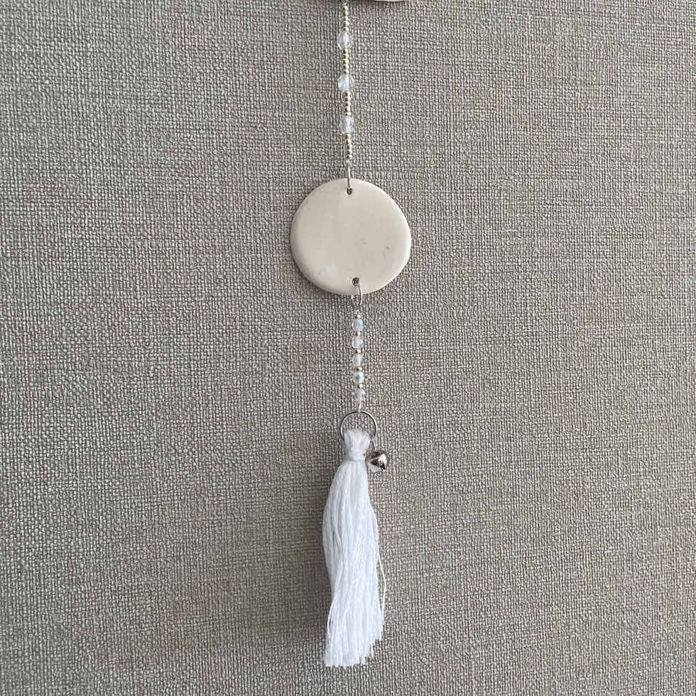 Cette élégante suspension décorative représente les différentes phases de la lune. Délicatement fabriquée à la main avec une grande attention aux détails, elle est conçue pour ajouter une ambiance mystique et apaisante à n'importe quel espace.