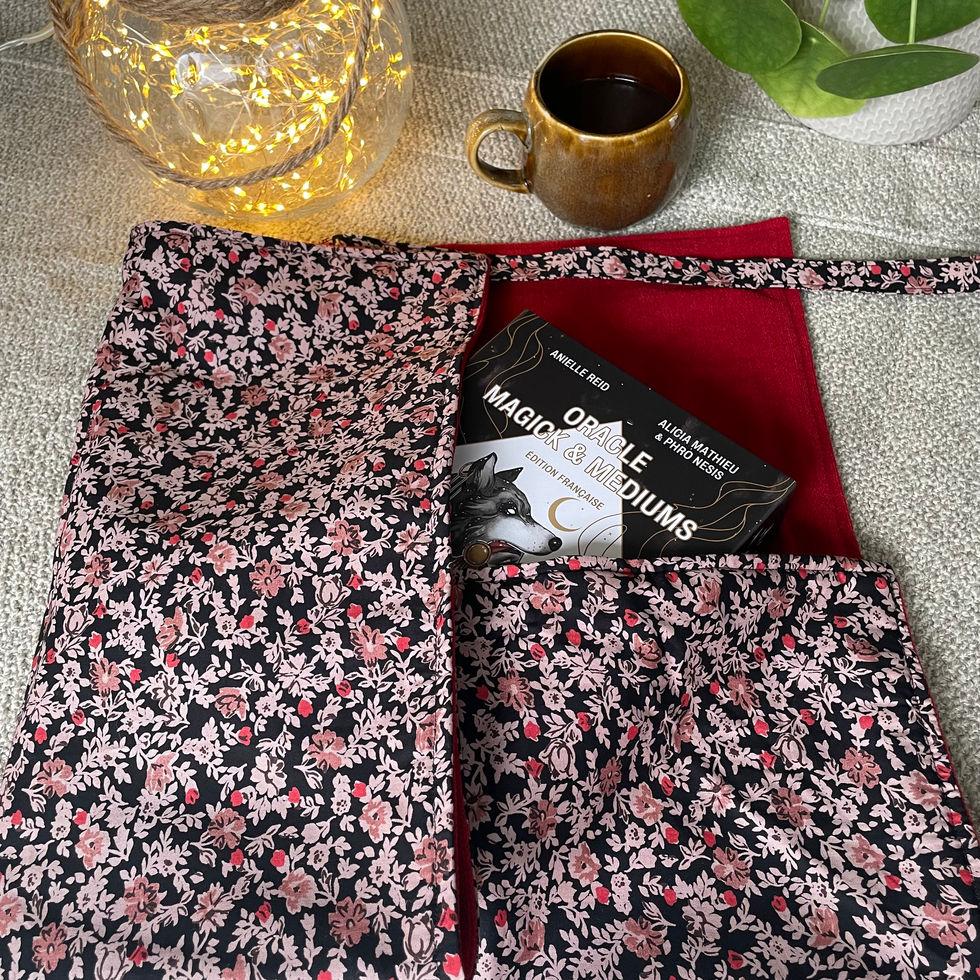 Il est conçu pour accompagner vos aventures divinatoires en pleine nature ou dans des lieux publics. Il se replie astucieusement sur vos outils, ce qui garantit que votre carnet de notes et votre jeu de cartes sont toujours à portée de main, tout en les préservant des aléas du voyage.